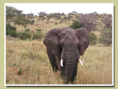 An angry elephants in Tarangire, as seen from the rear of our truck.
